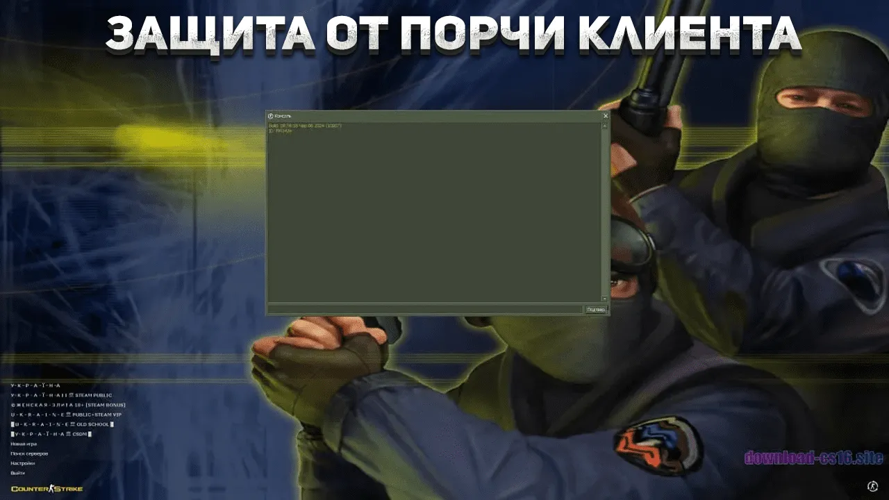 Counter-Strike 1.6 – оригинальная версия игры, основанная на официальной Steam версии. Мы тщательно переработали клиент, устранив все баги, которые встречались в старых сборках CS 1.6. Наша версия защищена от взломов и повреждений, а также полностью переведена на русский язык. В игре доступен обширный список лучших серверов из стран СНГ с минимальными показателями пинга, что гарантирует комфортную игру. Конфигурация клиента оптимизирована для максимально точной стрельбы с минимальным разбросом, что поможет вам уверенно поражать противников. Присоединяйтесь к более чем 250 тысячам игроков, которые уже выбрали нашу сборку. Поддержка доступна на всех версиях Windows: XP, 7, 8, 10 и 11.